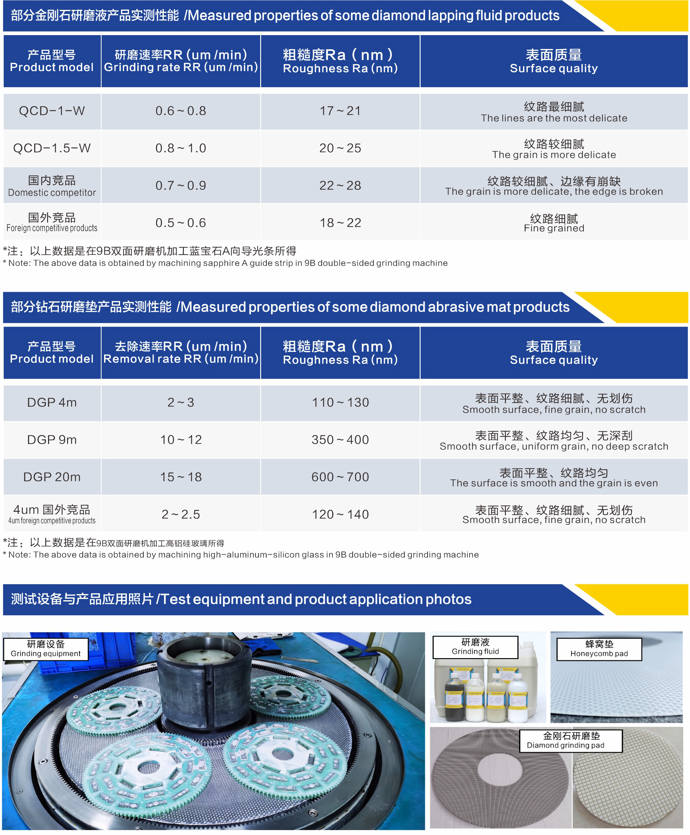 圣高機(jī)械采用自研技術(shù)和獨(dú)特工藝制備出的造粒金剛石微粉顆粒球形度高、研磨速率快,同時Ra值小,不易造成深劃傷,加工良率高。該造粒微粉可制備成金剛石研磨液或鉆石研磨墊,廣泛適用于藍(lán)寶石、SiC、微晶玻璃、陶瓷、硬質(zhì)金屬等硬脆材料的單雙面減薄、研磨和拋光。